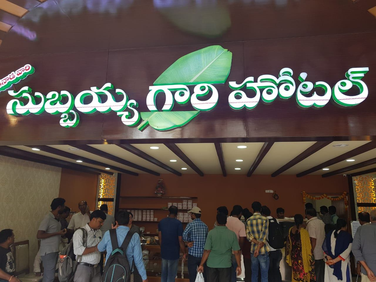 Subbayya Gari Hotel is the brain child of Shree Subbayya garu. His unique ability to combine ingredients in a perfect proportion using the finest and freshest ingredients made him bring out the best taste of traditional food of the land. Mr. Subbayya's passion towards bringing the delicious and hygienic food at an affordable cost made him to streamline his efforts to open a mess. Ultimately, in 1950, with the support staff of 10 people, he opened a small mess and started serving meals for just 50 paisa.